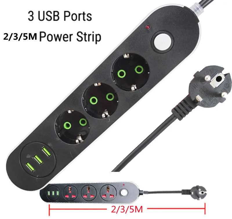 2 Round Power Strip | USB Travel Adapter | Socket Power Plug EU | 2M 3M 5M Extension Cable | Kitchen Household Use | Universal Charger