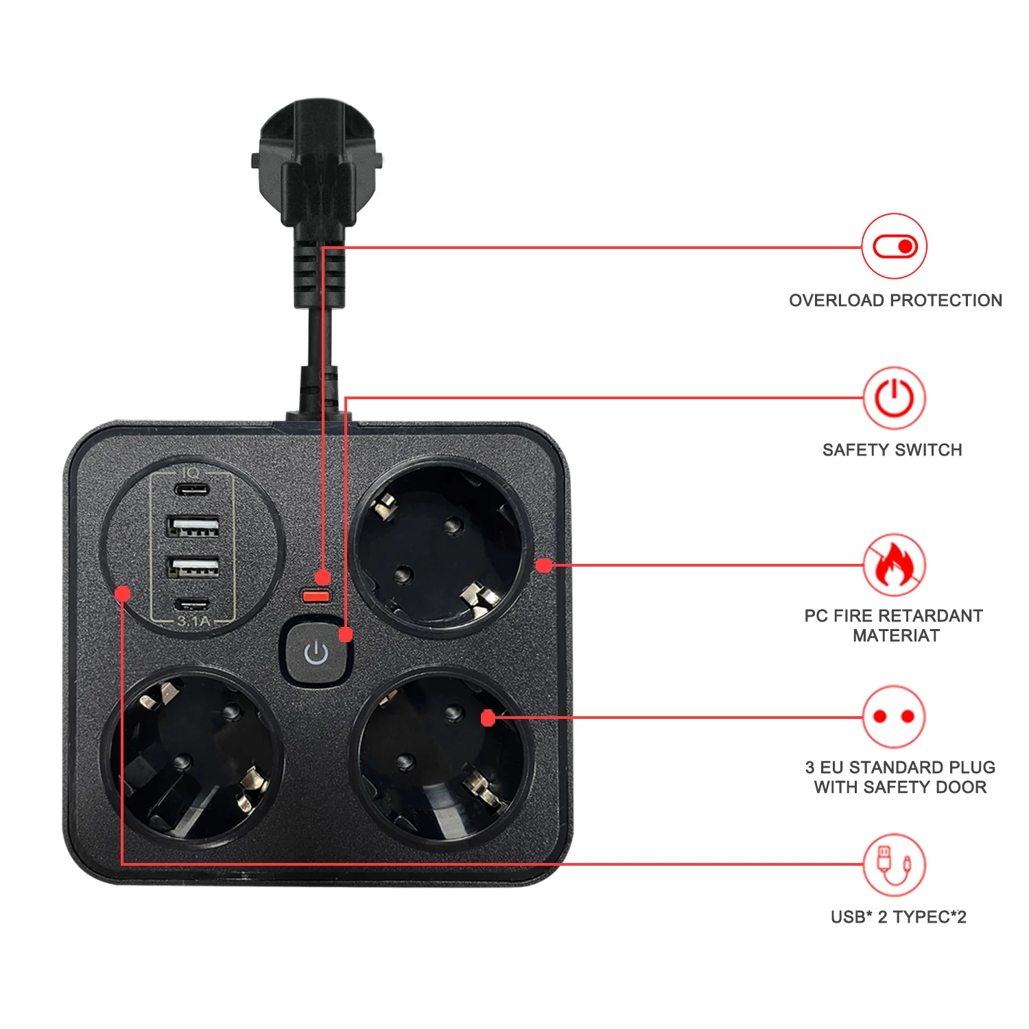 - Overload protection : Protects your devices from power surges.