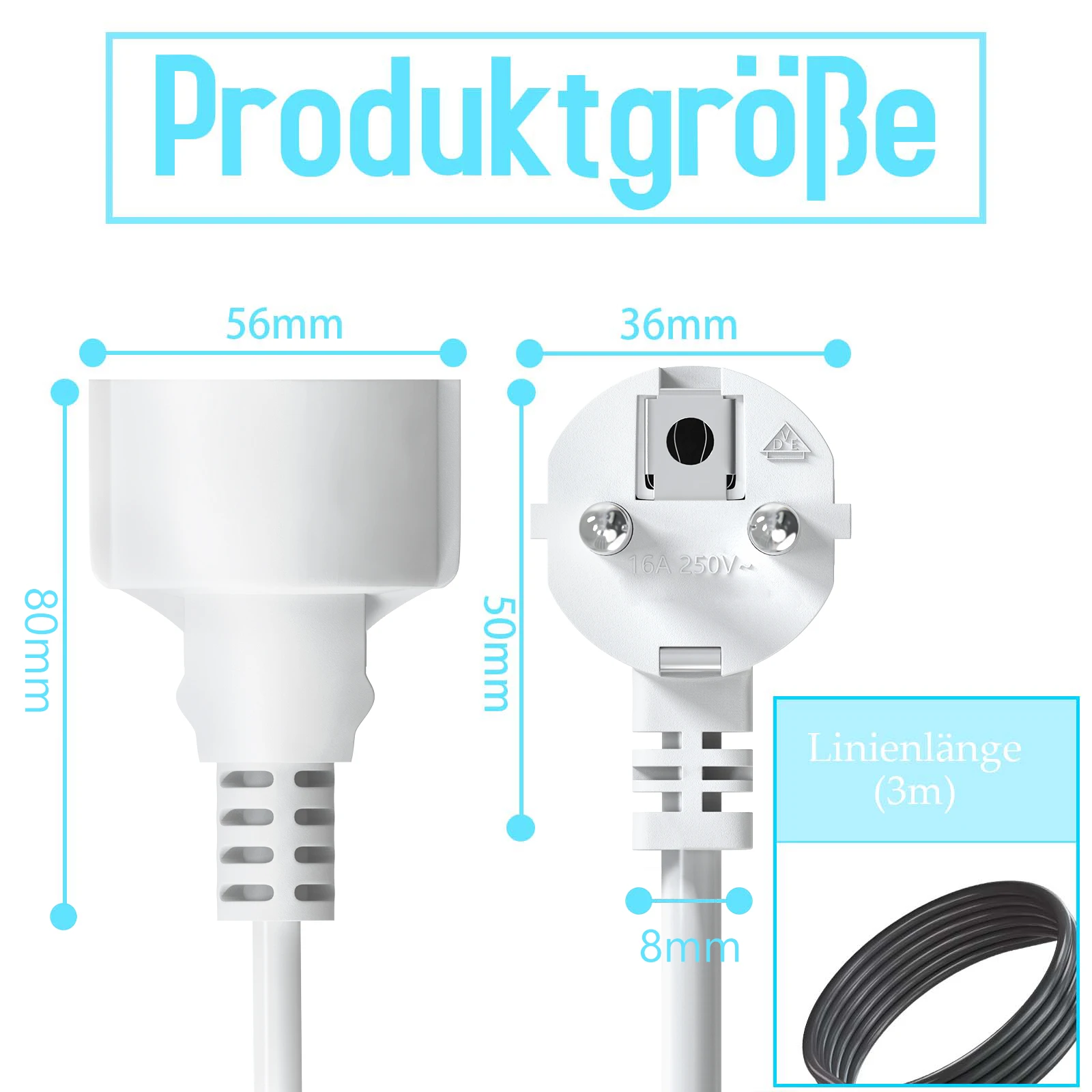 - High Quality Material: Equipped with rubber insulation material and suitable for a maximum power of 3680W at 250V/16A.