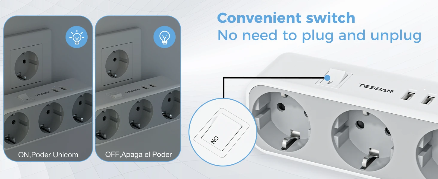Overall, the TESSAN Plug with Socket is a versatile and efficient solution for anyone needing to manage multiple devices in a tidy and efficient manner.