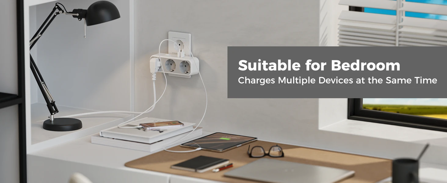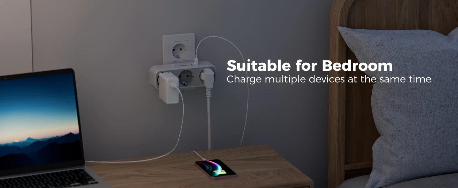 - Suitable for various electrical devices, this plug adapter is ideal for use in bedrooms, bathrooms, and kitchens, accommodating laptops, phones, tablets, electric toothbrushes, hairdryers, and rice cookers.