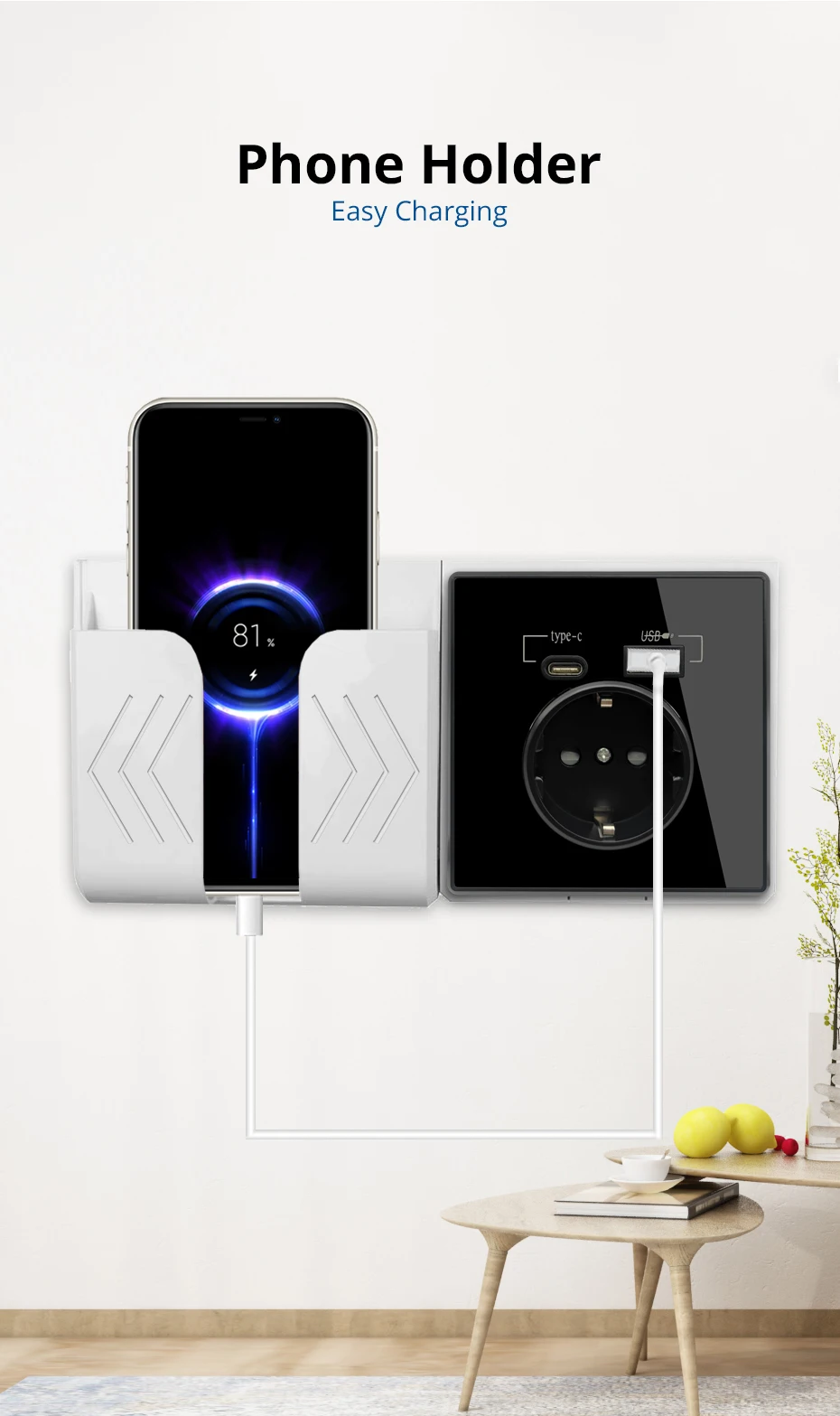 Type-C A Interface Outlet | Acrylic Mirror Crystal Panel | Black Wall | EU | Russia | Spain | French Socket | With USB Charge 5V 2100mA | Holder