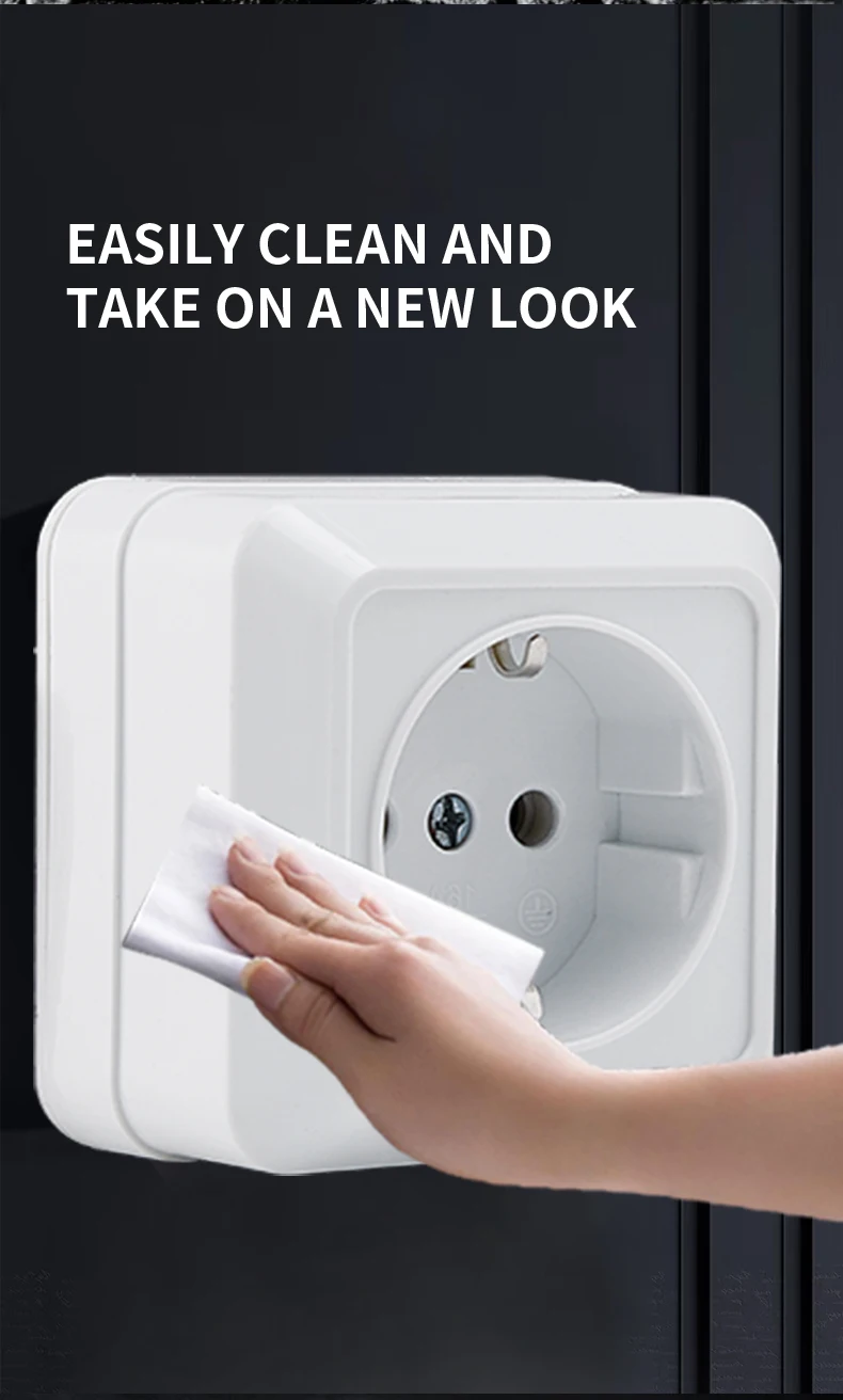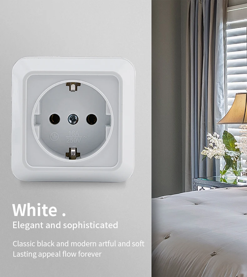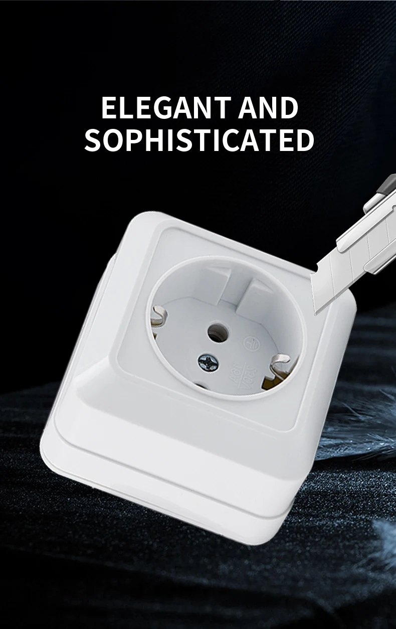 WESA White Wall Mount Socket EU Standard Electrical Outlett Ground Vintage Surface Power Socket Plug Flame Retardant Plastic