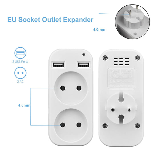 Wall Outlet USB EU Plug Adapter 1 To 2 Way European Standard Extender Socket With 2 USB Port Power Strip AC Convert Adaptor