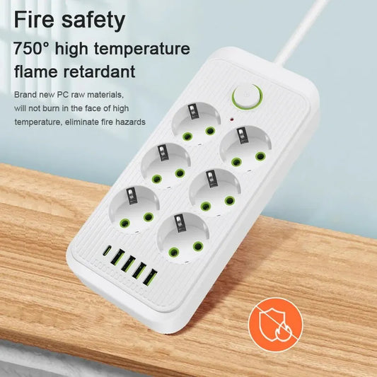 EU KR Plug Power Strip | AC Outlets | Multitap Electrical Wall Socket | Extension Cord | USB C Ports | Fast Charging | Network Filter
