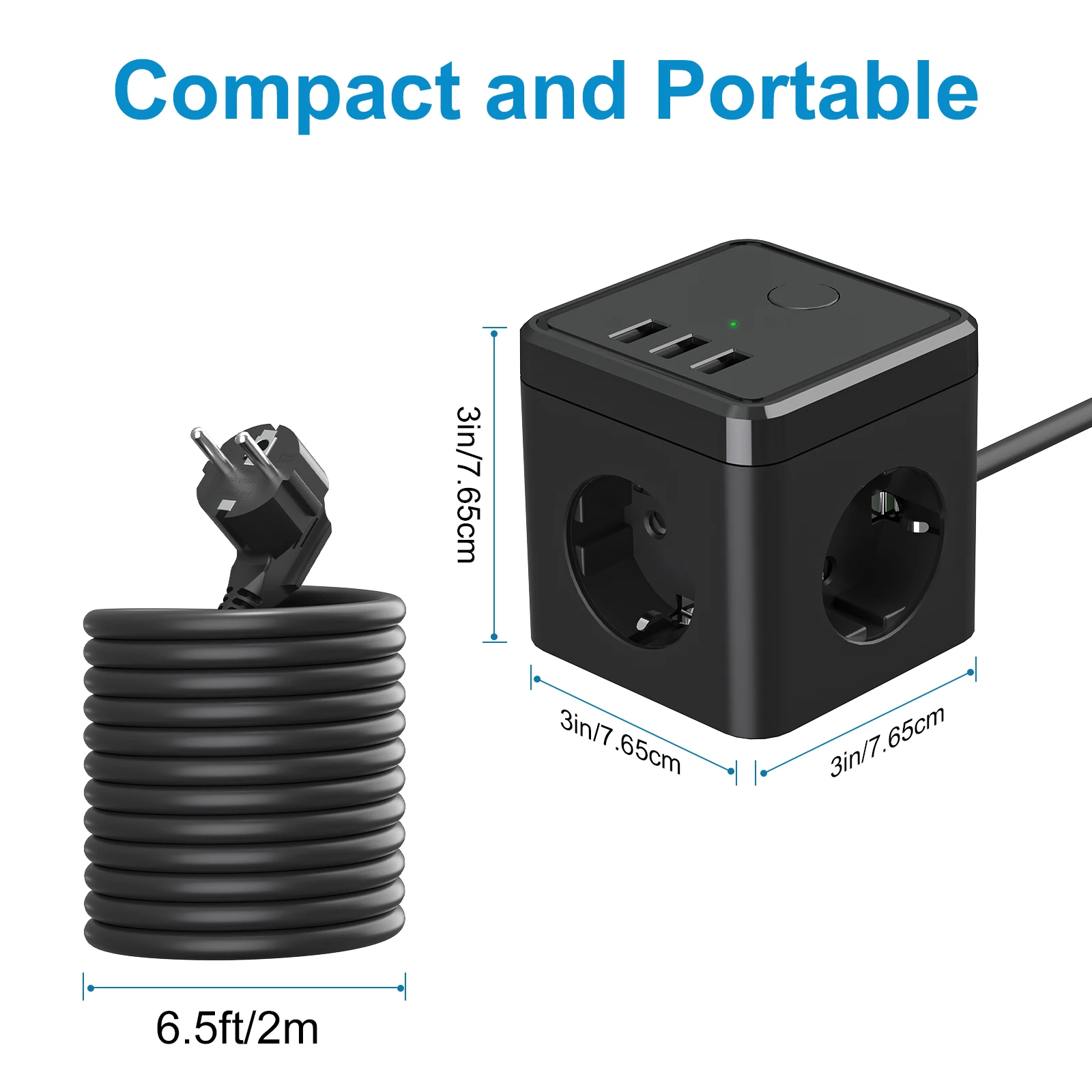 【6 in 1 cube multiple socket】: The USB socket surge protection (2500 W/16 A) with 3-socket outlets and 3 USB (5 V/3.1 A) can be used on your table for up to six electronic devices simultaneously. Compact size only 7.65 x 7.65 x 7.65 cm, you can put it in the corner or on the table. Say goodbye to the messy cables. You have more power outlets and space to charge electronic devices.