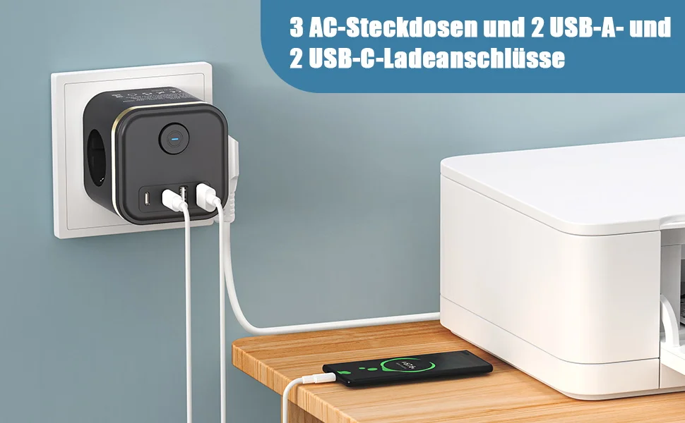 ★ 【7-in-1 multi-function socket】: This socket cube with 3 AC outlets, 2 USB-A, and 2 Type-C can power 7 devices at the same time. The socket with a maximum output of 3680W is suitable for most electrical devices and charges your mobile phones and laptops on sofas, desks and bedside tables.